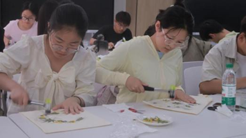 活动吸引了400余名学生参与。学生们以滴漆技法在空白扇面上创作,色彩的晕染与交融将内心的情绪转化为具象的艺术表达,学生们在动手实践中感受艺术对情绪的疗愈力。